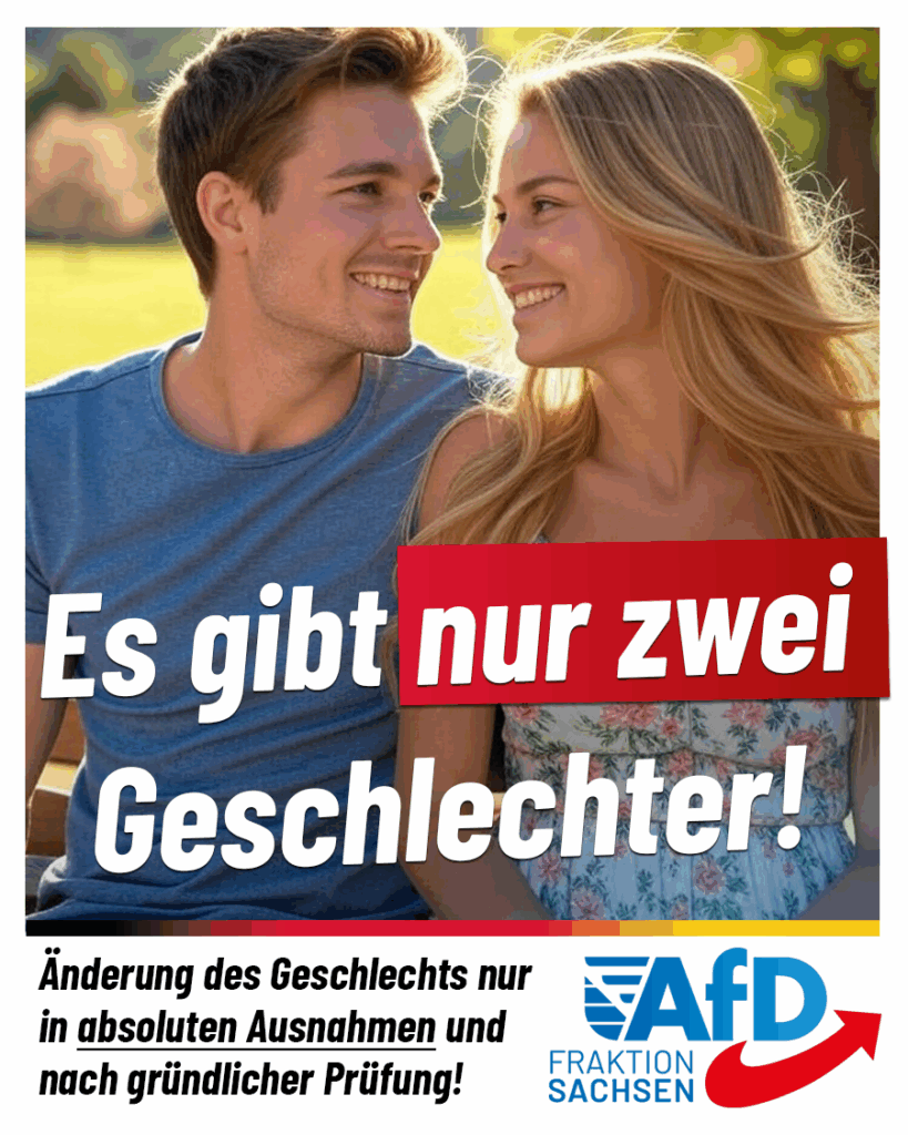 Es gibt nur zwei Geschlechter. Jede Abweichung von dieser Regel ist eine seltene Ausnahme, die mit viel Fingerspitzengefühl behandelt werden muss. Aus diesem Grund darf es zu keinen spontanen Geschlechtsumwandlungen kommen. Die Änderung des Geschlechtseintrags bedarf folglich der gründlichen Prüfung und sollte niemals ohne Gutachten erlaubt sein.“
