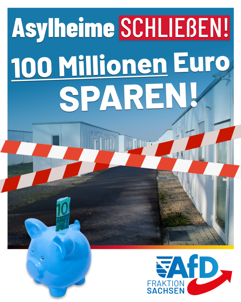 Deshalb spreche ich mich dafür aus, die Asylkapazitäten massiv zu reduzieren. Sachsen braucht keine dreistellige Anzahl an Asylheimen. Die Regierung sollte alle nicht benötigten Asylheime schließen und könnte so allein bei der Erstaufnahme fast 100 Millionen Euro sparen. In den Landkreisen und Städten besteht mindestens ein ebenso großes Einsparpotential.“