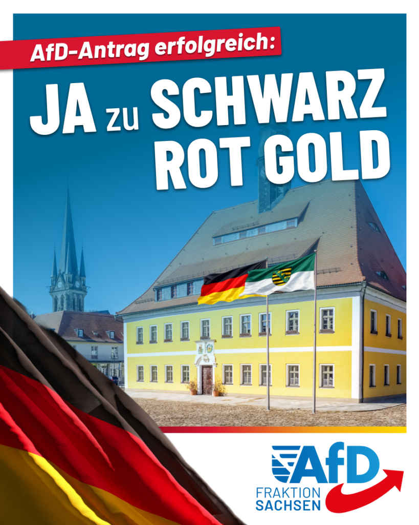 Ich bin mir sicher, dass bereits im Februar die nächsten AfD-Anträge zur dauerhaften Beflaggung erfolgreich sein werden. Wir wünschen uns eine solche Beflaggung sachsenweit vor allen Rathäusern und Schulen. Für die Schulen haben wir das im Landtag beantragt (Drs. 8/2865). Die Abstimmung darüber steht noch aus.“
