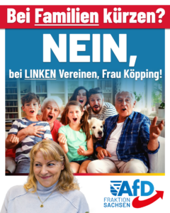 Der Freistaat Sachsen muss seine Prioritäten komplett neu ordnen. Statt Unmengen an Steuergeld für Asyl, Klima und NGOs zu verbrennen, muss die Regierung die Elternbeiträge in Kindergärten senken und die Pflege wieder für jedermann bezahlbar machen.