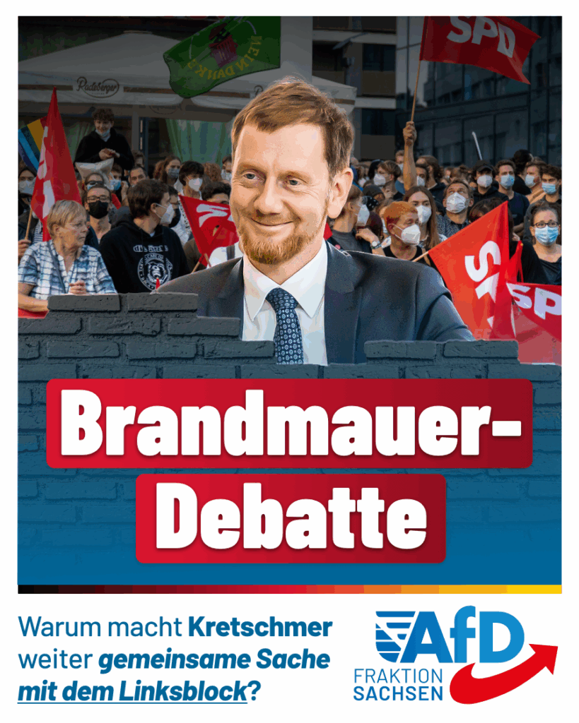 Die Brandmauer ist eine Verhöhnung des Wählerwillens. Zwei Drittel der Sachsen wollen eine bürgerlich-konservative Politikwende. Solange die CDU jedoch an ihrem Koalitionsvertrag mit der SPD festhält, der eine Suche nach parlamentarischen Mehrheiten mit der AfD ausschließt, macht sie sich abhängig vom Linksblock. Diese Abhängigkeit ist auch extrem teuer und hat in den zurückliegenden Haushaltsverhandlungen 230 Millionen Euro an Steuergeld gekostet.
