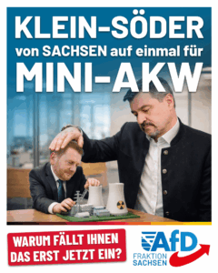 „Die Industrie flieht aus Sachsen und aus ganz Deutschland, weil die Energiekosten extrem hoch sind. Diese hohen Energiekosten führen dazu, dass unsere Unternehmen nicht mehr wettbewerbsfähig produzieren können. Verantwortlich dafür ist die sogenannte grüne Energiewende. Sie setzt vorrangig auf teure und unzuverlässige Wind- und Sonnenenergie. Die deutschen Kernkraftwerke wurden abgeschaltet. Diese und weitere Maßnahmen haben zu den enorm hohen Energiekosten geführt, die heute unsere Industrie ruinieren und die Verbraucher enorm belasten. Wer noch mehr Wind- und Sonnenenergie fordert, der treibt die Energiekosten weiter in die Höhe. Wir kaufen ja heute schon – gerade weil Wind- und Sonnenenergie so unzuverlässig sind – immer wieder Kernenergie aus dem Ausland ein. Zum Glück waren unsere Nachbarn vernünftiger und haben ihre Kernkraftwerke am Netz gelassen. Wir sollten unsere schleunigst wieder anschalten und in Kernenergie investieren, bevor das letzte Industrieunternehmen hierzulande pleite gegangen oder ins Ausland geflohen ist.“