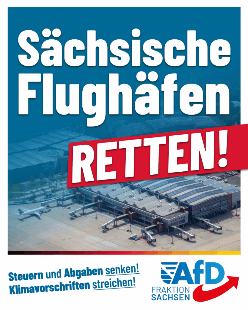 Die AfD sagt deshalb: In erster Linie für unsere Wirtschaft, aber natürlich auch für jeden Urlauber muss das Fliegen von Deutschland und Sachsen aus wieder bezahlbar werden.